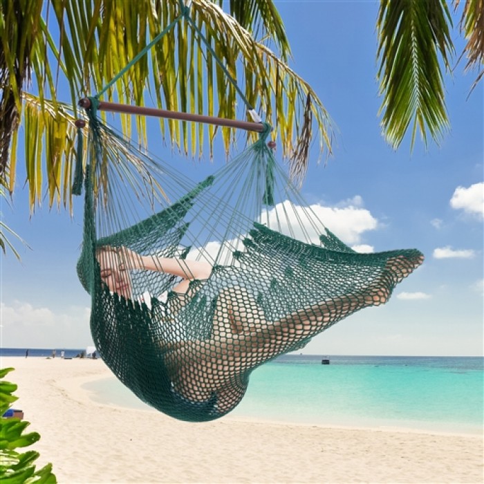 Bring the style and comfort of a genuine Caribbean Hammock Chair Regular (Green) to just about anywhere, This compact design is perfect for porches, trees, sun rooms, game rooms, indoors or out under your favorite tree. It is tightly hand woven from polyester cords that are soft on the skin but durable in the elements.